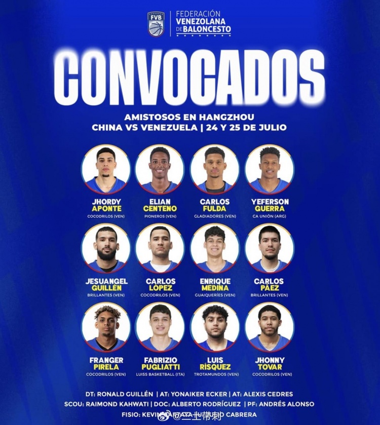 2025年男篮美洲杯8月22-31日进行,所以他们今夏也是有正式比赛任务的,来华的12人,有4个人(Yeferson Guerra、Franger Pirela、Fabrizio Pugliatti、Enrique Medina)参加过此前的美洲杯预选赛,并不是核心球员。