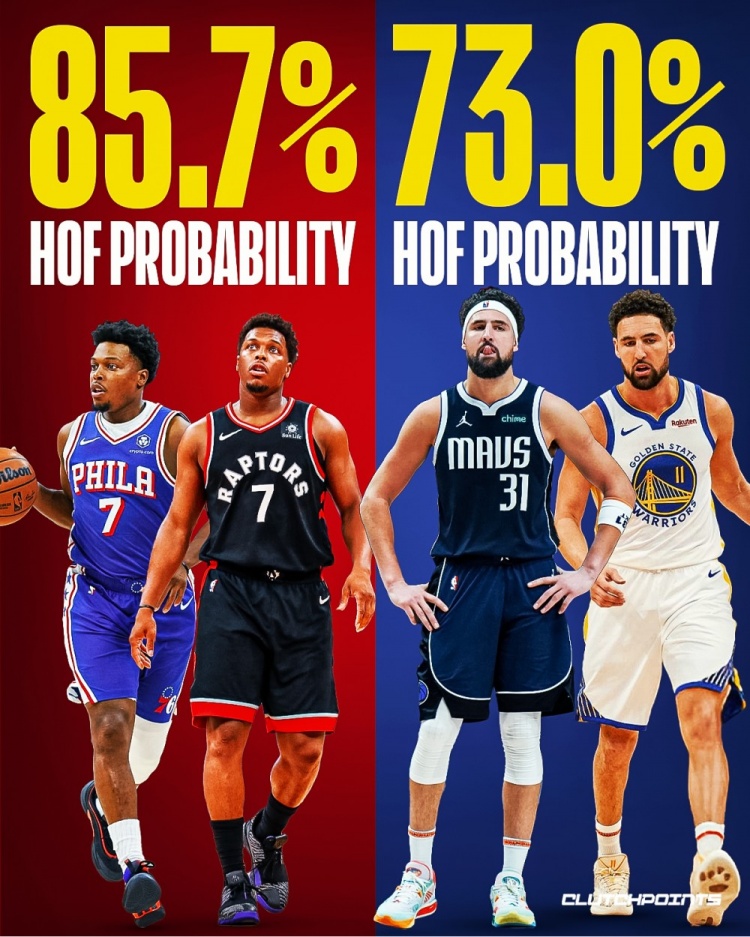 克莱-汤普森是勇士王朝的重要基石。四枚冠军戒指加身,几乎难以想象这个王朝若没有他会是何光景。但篮球参考网站的名人堂概率模型目前却将凯尔-洛瑞排在更前列。