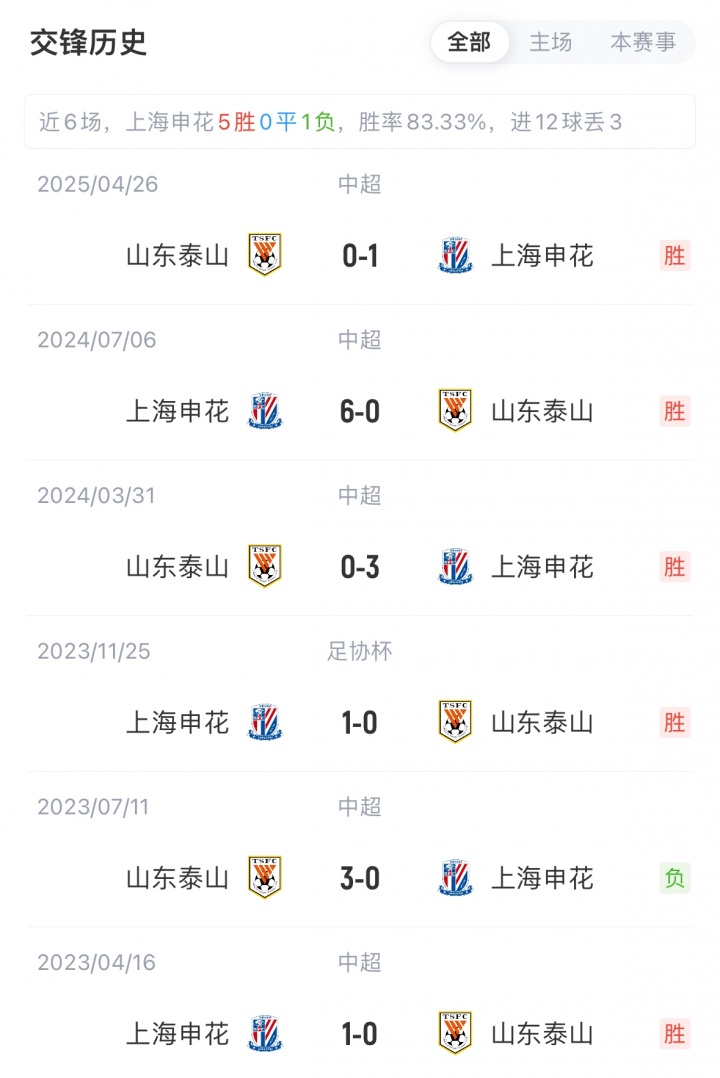 申花15胜4平4负积49分位列中超第二,距离榜首的蓉城仅有1分差距,泰山12胜4平7负积40分位列中超第5。近期战绩方面,申花近五轮仅1胜,泰山近期则是豪取四连胜。
